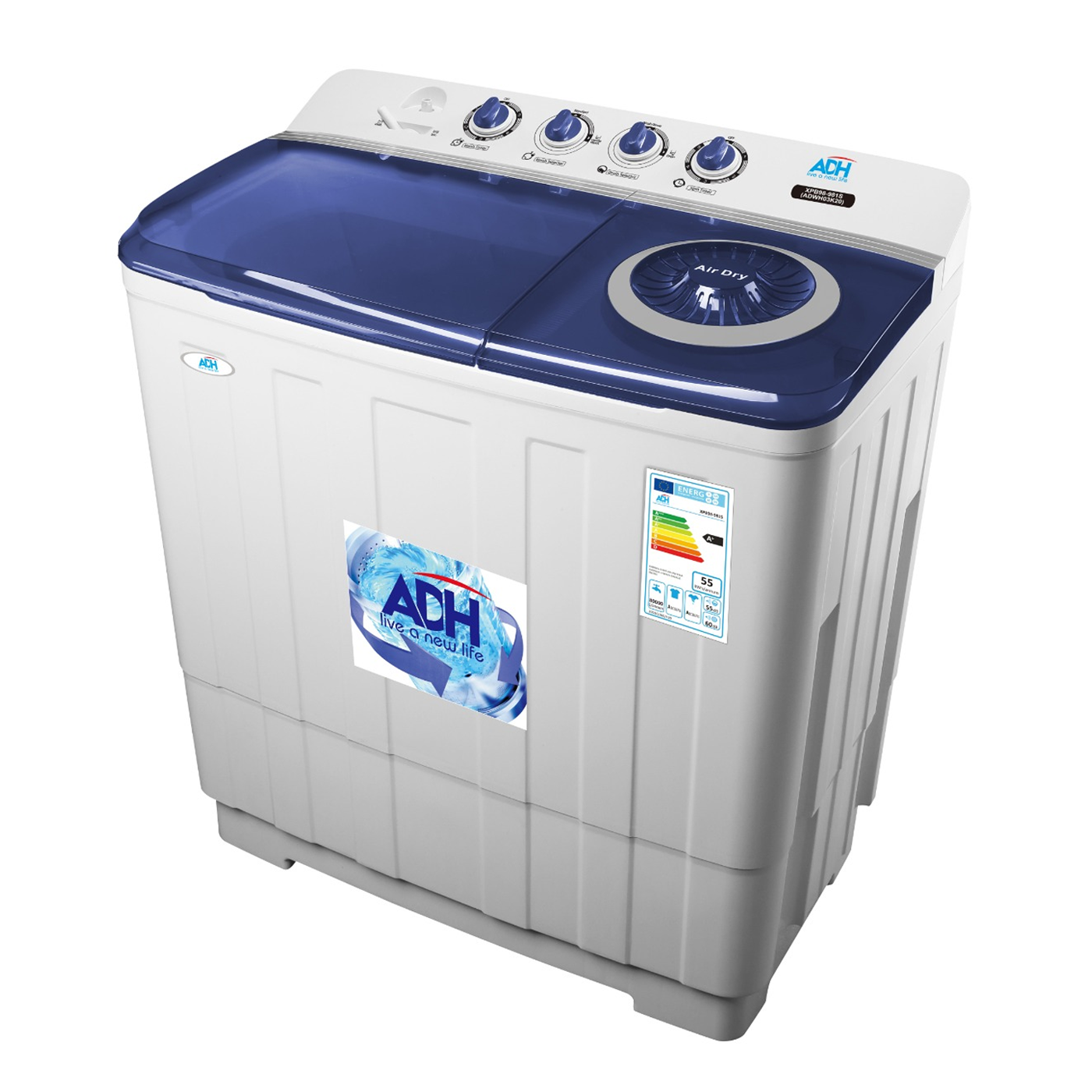 The ADH 20kg Twin Tub Washing Machine is a compact and efficient appliance designed to handle small to medium laundry loads, making it ideal for households with limited space. Below are the key features and specifications of the product: