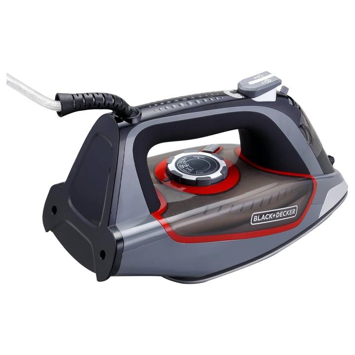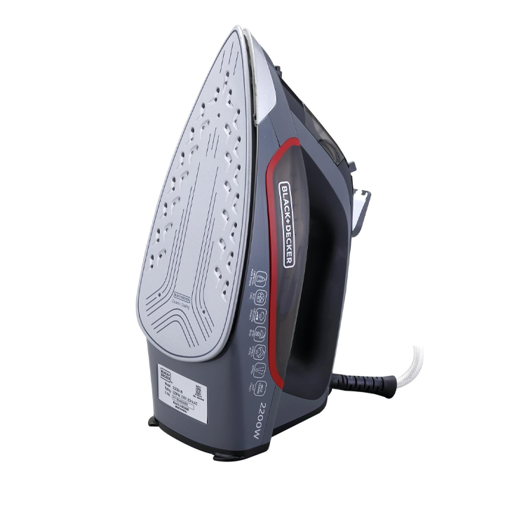 Black+Decker X2050-B5 Ceramic Soleplate Steam Iron – 2200W makes ironing effortless. It features adjustable steam and temperature control for ironing different fabrics. Its nonstick soleplate ensures easy gliding. This steam iron has a unique vertical steam function that removes crease on hanging fabrics. The 0-20g/min variable steam and 60g/min boost help remove stubborn wrinkles. With its anti-scaling system, the Black and Decker steam iron prevents scale build-up for better ironing performance. Its self-clean function ensures easy maintenance, while its 1.8m cord provides ample reach.