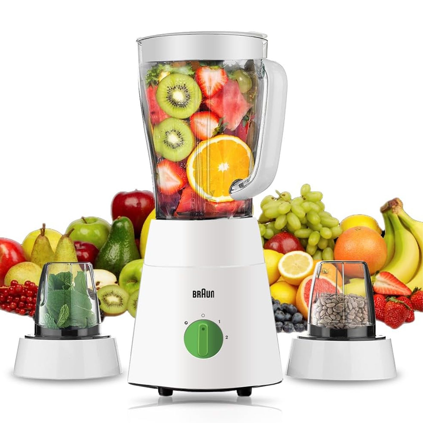 Braun Blender With Mill JB-1023WH makes preparing your favourite food and beverages fast and easy. The specially designed triangular-shaped jug features Tri Action Technology for easy blending of all kinds of food. Its unique edges help avoid blind spots and redirect the ingredients to the blending area faster for great results for all your recipe. All parts are east to disassemble and can be placed directly into dishwasher including goblet, lid and even blades.