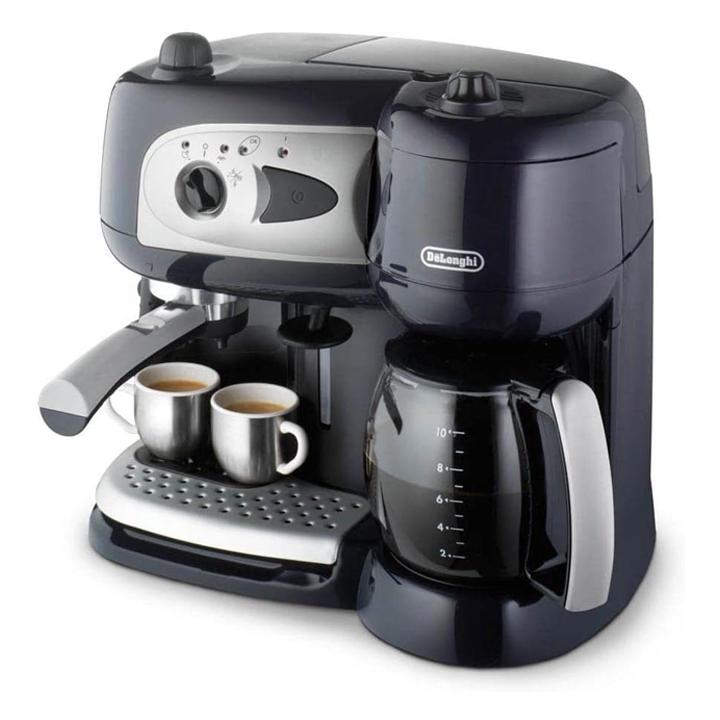 De’Longhi BCO260CD.1 2-in-1 Pump Coffee Maker and Filter Coffee Machine: Combined espresso machine for preparing excellent espressos, cappuccinos and filter coffee. Choice of use: ground coffee or pods A perfect cup result. Making your coffee has never been easier. Preparation of 2 coffees at the same time. Swivel unit allows easy cleaning without moving the machine and thus ensures a longer service life. Box contents: 1 x BCO260CD.1 2-in-1 De’Longhi coffee maker with pump and filter coffee maker