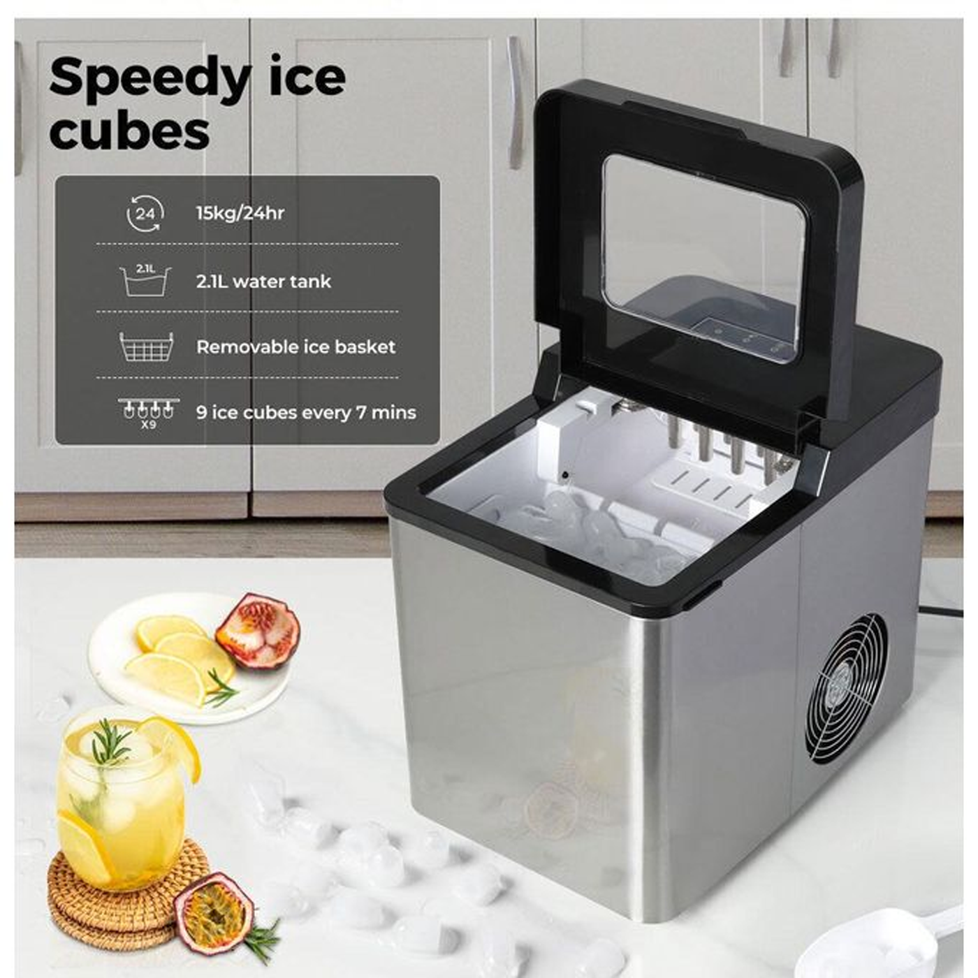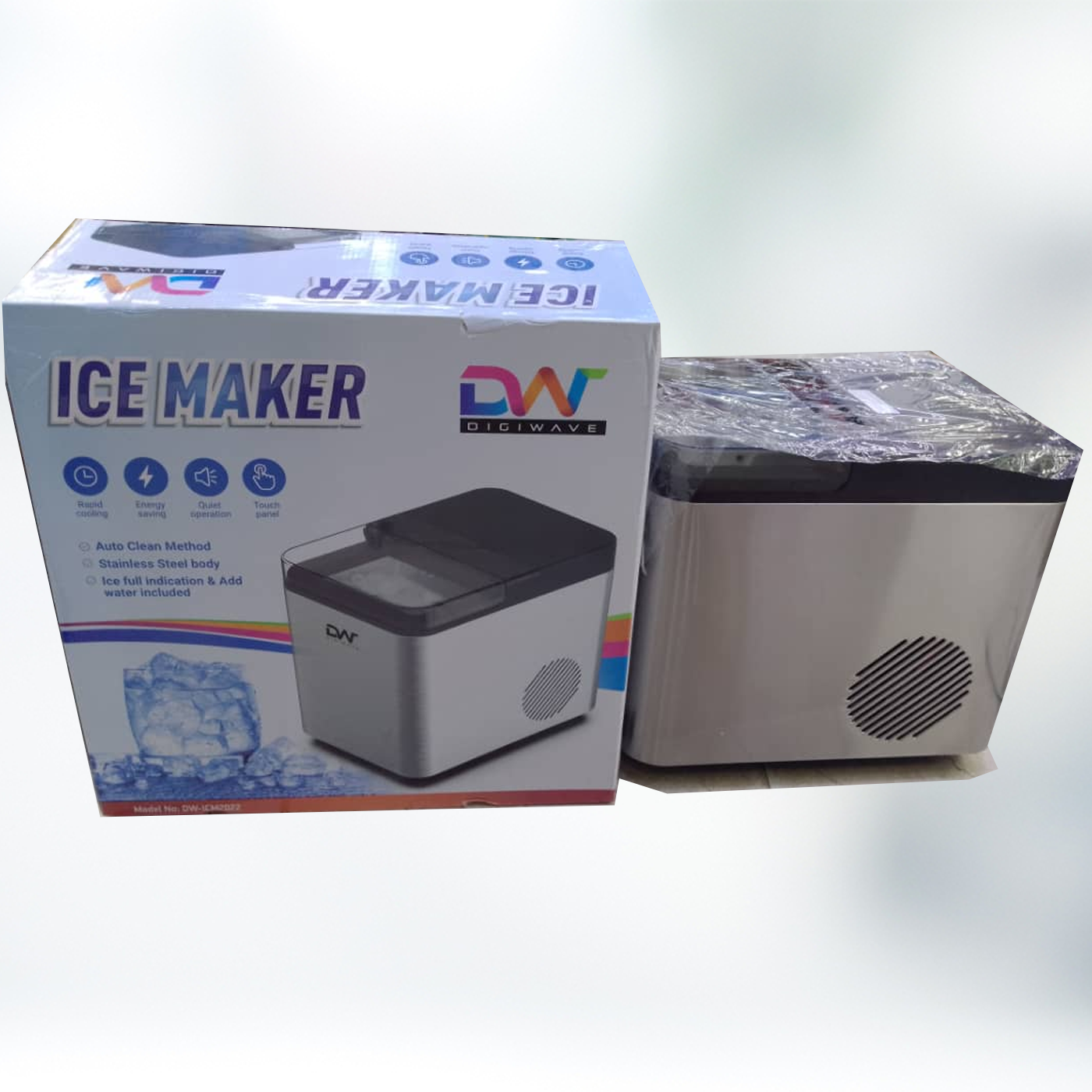 Effortlessly produce fresh ice with the Digiwave Ice Maker, Model DW-ICM2022. With a high daily production capacity and user-friendly features, this ice maker is perfect for home kitchens, small businesses, and outdoor events, ensuring a steady supply of ice for all your cooling needs.