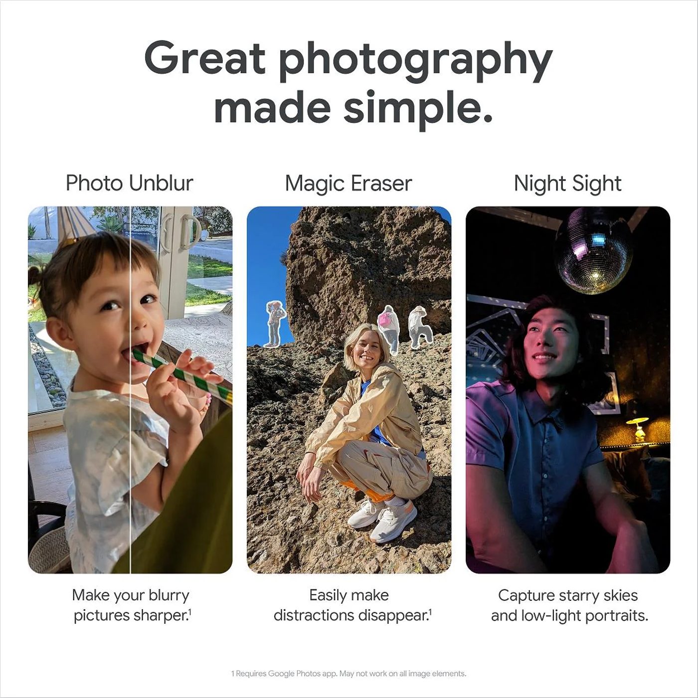 Pixel 7a can help fix the less-than-perfect photos. From clearing up blurry pictures with Photo Unblur to easily removing distractions with Magic Eraser, you can make your old photos look better with just a few taps in Google Photos.14
