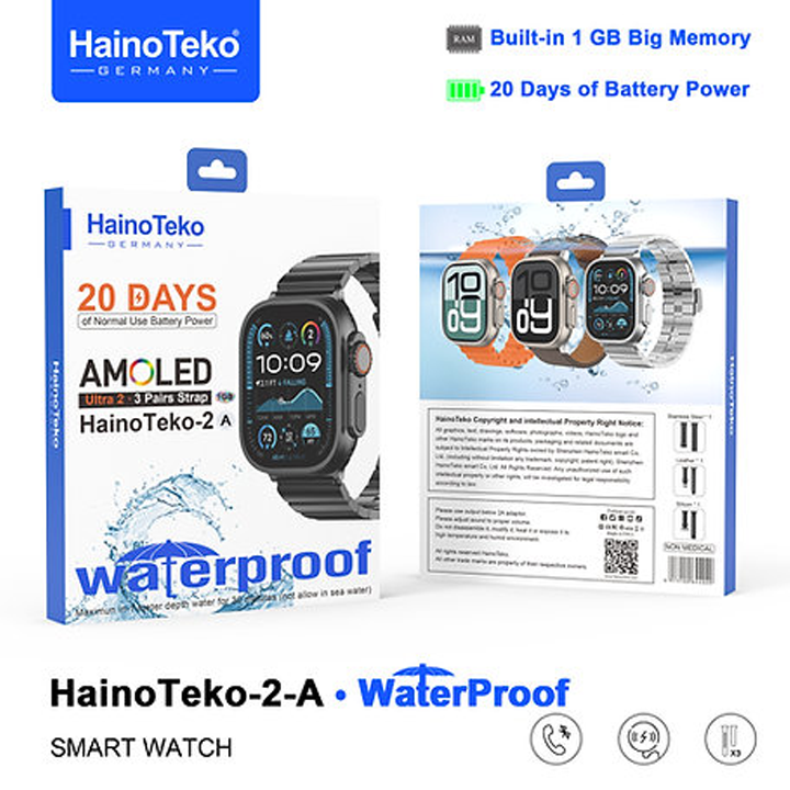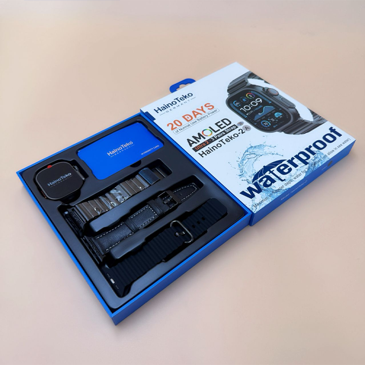 Heino Teco Germany HainoTeko-2 Smart Watch, 3 Strap (Stainless Steel + Leather + Silicone) HD AMOLED Design: The Haino Teko Watch HainoTeko-2 comes with a high-definition round design The screen is covered with AMOLED curved glass Includes 3 different straps to suit all occasions. Features: A curved AMOLED screen provides an amazing and clear visual experience. Continuous heart rate monitoring. Tracking physical activity, calories and distance traveled. Multi-sport mode (such as running, walking, jogging and more). Bluetooth feature to connect to a mobile phone. The package includes an application that can be downloaded using a QR code. Powerful battery.