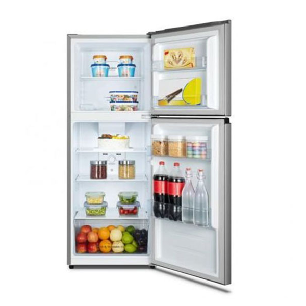 Hisense 266L Double Door Refrigerator | RT266N4DGN, Frost Free, Silver, RT266N4DGN Fridge-freezer combination Spacious and stylish – the Hisense fridge-freezer not only scores with its beautiful design but also with the latest fridge-freezer technology. Equipped with the energy efficiency class A ++ Total No Frost 90 ° door opening angle Comfortable opening and closing of the door. Even when placed on the side of the wall or in narrow niches, the doors can be opened at right angles and the drawers can be easily pulled out. Energy efficiency class A ++ Hisense’s new refrigerators and freezers have achieved an outstanding A ++ energy efficiency class, saving 40% of energy than appliances with energy efficiency class A. This efficiency is achieved through a combination of advanced technology, improved insulation and a highly efficient compressor. Always perfectly chilled food The Hisense Multi Air Flow System ensures an even distribution of cool air and a constant temperature throughout the refrigerator interior. For perfectly chilled food, no matter on which shelf it is stored in the refrigerator. Total No Frost The Total No Frost technology ensures intensive circulation of the cold air and thus prevents ice formation. This keeps food fresh and nutritious for longer. Manual defrosting is a thing of the past; defrosting is automatic.