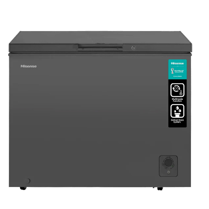 Hisense 310L Chest Freezer is equipped with a convenient mechanical temperature feature with an adjustable thermostat. The eco-friendly refrigerator features an international standard design and operates while emitting a low noise level. Other smart qualities include Quick and Deep Freezing, Defrosting with Water Disposal Device, Over-Temperature Alarm, and integrated LED light. The fridge also boasts of aluminum embossing and castors for easy movement.