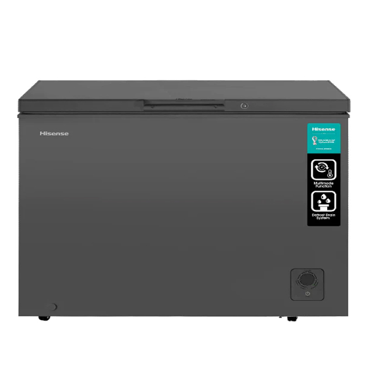 Hisense 400litre Chest Freezer FC-40DT4SB1 is equipped with a convenient mechanical temperature feature with an adjustable thermostat. The eco-friendly refrigerator features an international standard design and operates while emitting a low noise level. Other smart qualities include Quick and Deep Freezing, Defrosting with Water Disposal Device, Over-Temperature Alarm, and integrated LED light. The fridge also boasts aluminum embossing and castors for easy movement.