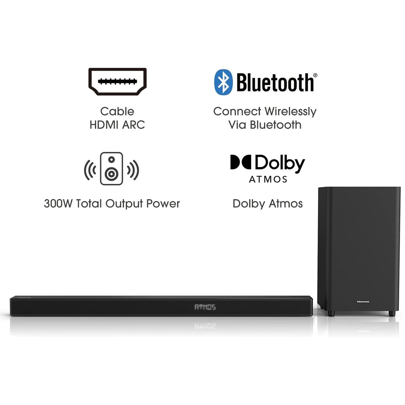 Hisense HS312 3.1ch Sound Bar with Wireless Subwoofer. Enjoy Better TV Sound: Easy to place and connect to your television, the Hisense H312 soundbar significantly improves your TV entertainment experience and is perfect for TVs. Instead of just hearing the scene, you’re transported into it.