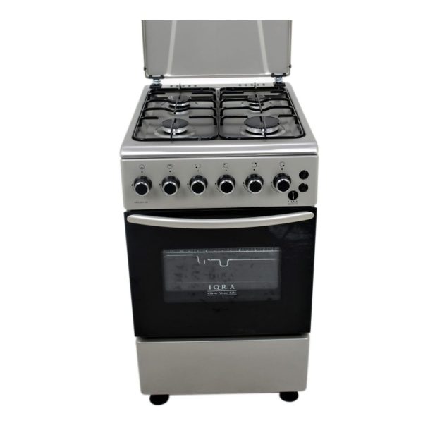IQRA 50x60cm Freestanding Cooker; 4 Gas, Auto Ignition, Grill and Rotisserie, Stainless Steel, IQ-C2001SS