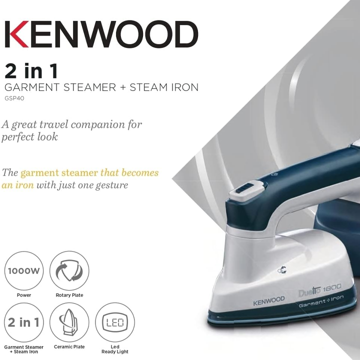 Kenwood 2 in1 Garment Steamer + Steam Iron 1000W GSP40.000WB