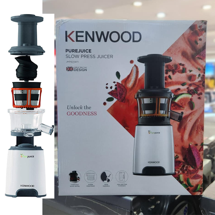 Kenwood Slow Press Juicer 150 W JMP601WH White/Grey is a great addition to your kitchen appliances, helping you prepare fresh juice with ease.