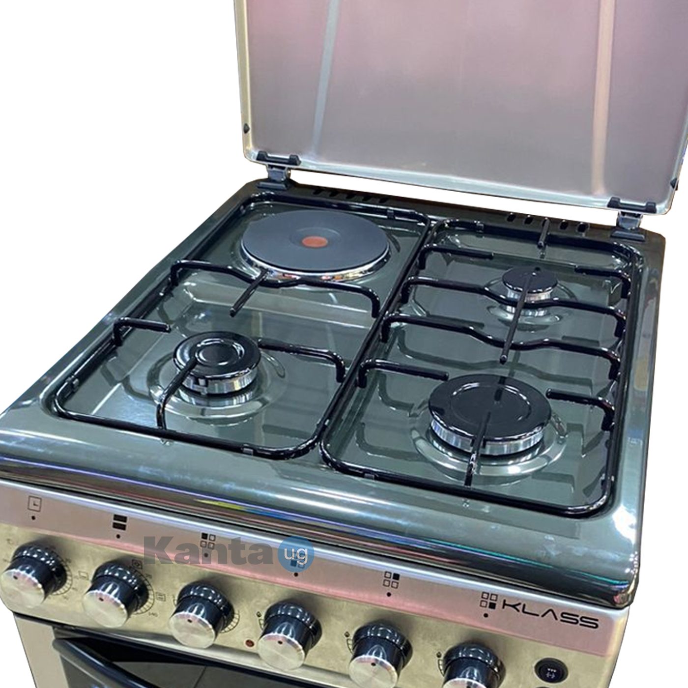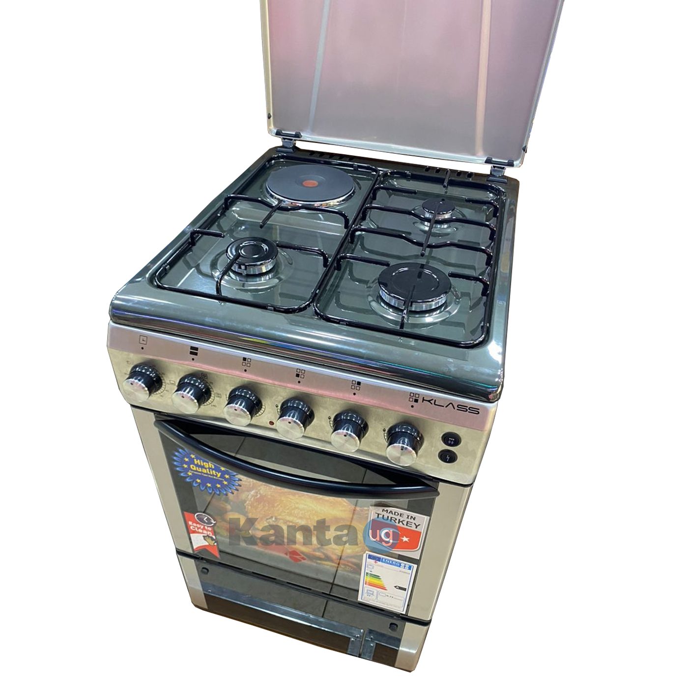KLASS Cooker 50x60cm, 3 Gas Burners + 1 Hot Plate, Electric Oven & Grill, Rotisserie, Oven Lamp & Timer.