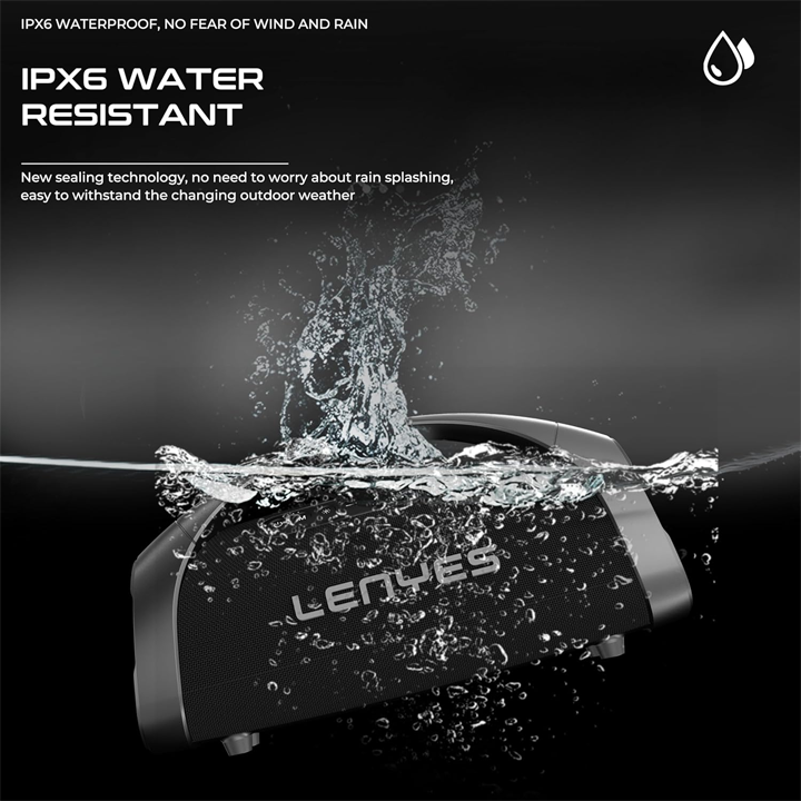 Lenyes S873 400W Bluetooth Party Speaker with Dual Wireless UHF Mics, 30000mAh Battery,60W PD Fast Charging, IPX6 Waterproof Resistant, TWS Pairing, 10h Playtime,Guitar Input, RGB Lights (Black)