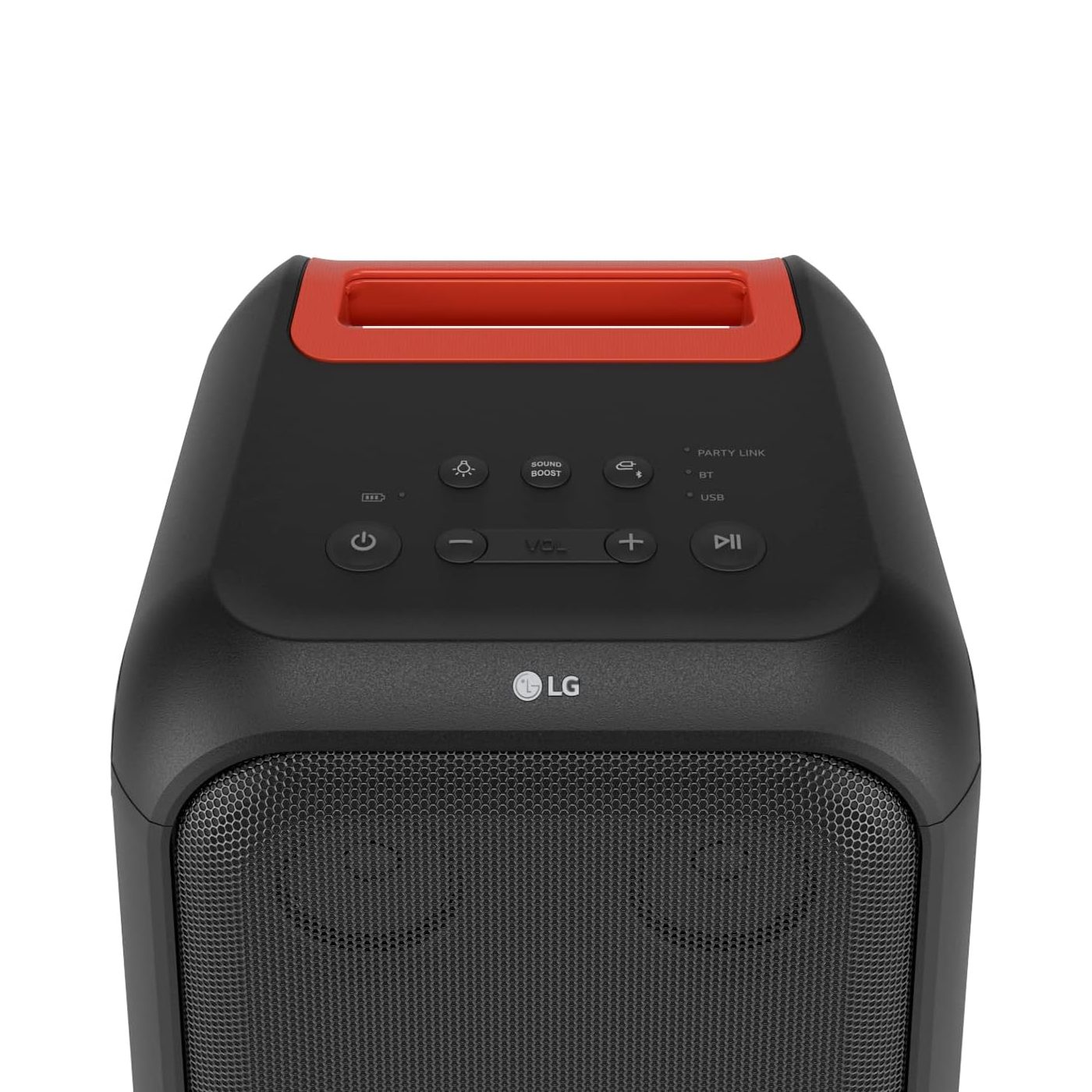 LG XL5S XBOOM Bluetooth Portable Speaker 200W Bigger the Sound, Bigger the Party Make the party bigger with an even bigger sound. LG XBOOM XL5S produces a powerful party sound to fill the venue. The One that Delivers Strong Bass Take your party to the next level and feel the deep bass with LG XBOOM XL5S. It has a 6.5-inch Giant Woofer to produce more powerful bass for the venue. Feel that Bass Even at Low Volume Hear the boomy bass any time. The Dynamic Bass Optimizer allows you to enjoy balanced sound without distortion of the bass. Crisp and Clear Sound Whether inside or outside hear high-frequency notes clearly. It has two 2.5-inch dome tweeters, delivering better sound. Make Your Party Mesmerizing LG XBOOM Party Lighting makes a party lit. You can create a party light show with flashy double strobe lighting.