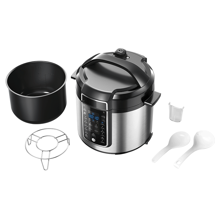 5.7L capacity,12 in 1 Multi Cooker,Up to 24 hours Pre-set Timer, 9-Stage Safety Guard (w/failsafe switch to ensure that function keys will not work when lid is not properly closed), Special Buttons: Manual Setting, Keep Warm, Delay Timer, Cooking