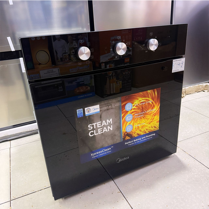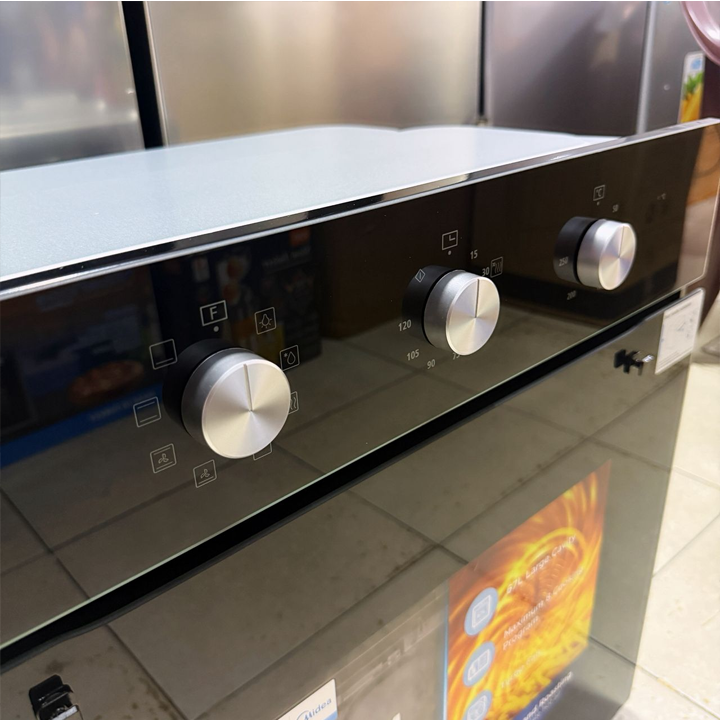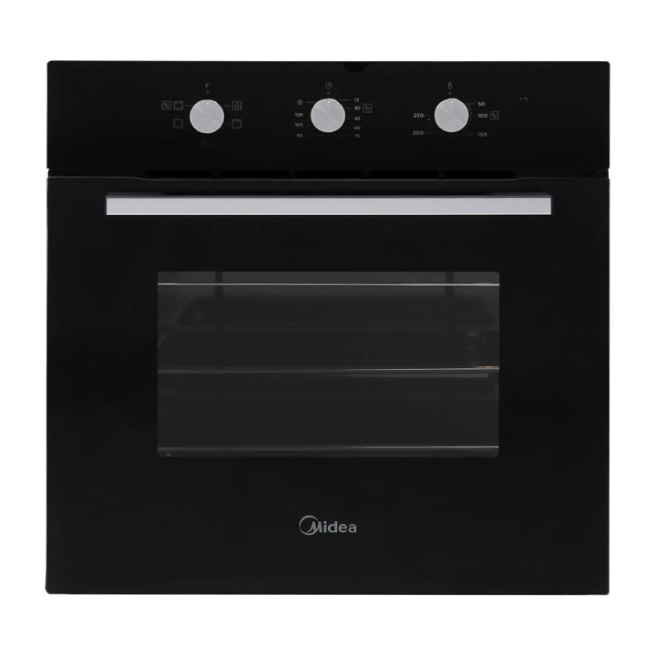 Midea 60cm Inbuilt Oven With Turbo Fan . A sleek and efficient black built-in oven designed for everyday family cooking, with easy-clean features and reliable performance.
