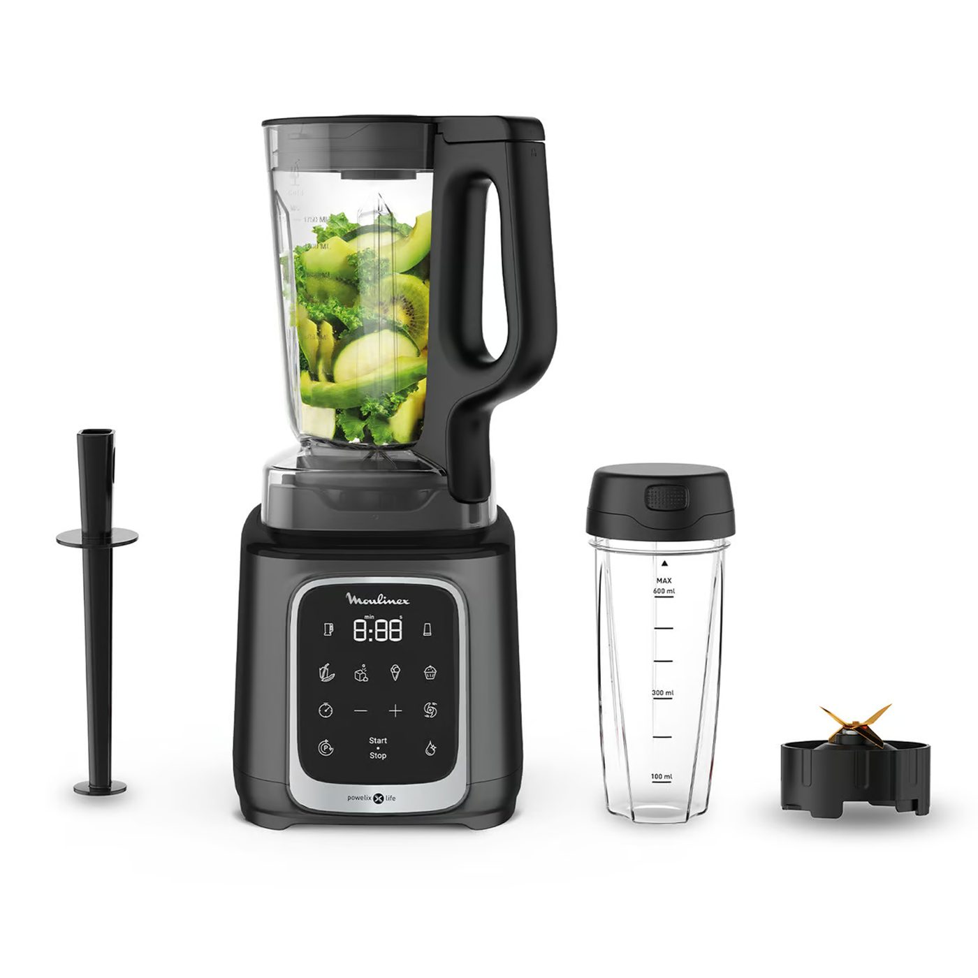 Moulinex 1.75L Blender 1600W | LM91HD27. Get the Moulinex Infinimix High-Speed Blender, a powerhouse of kitchen appliances. Its robust 1600-watt motor ensures that your blending experience is not only smooth but also highly efficient, allowing you to blend even the toughest of ingredients with ease. Equipped with six Powelix Blades, this blender is designed to crush and blend your ingredients effortlessly, guaranteeing exceptional results every time. With five automatic programs at your fingertips, you can prepare a variety of recipes with the simple touch of a button, from smoothies to soups and sauces, or even crushing ice for your favorite beverages. Fast and versatile, this blender will be your trusted kitchen companion.