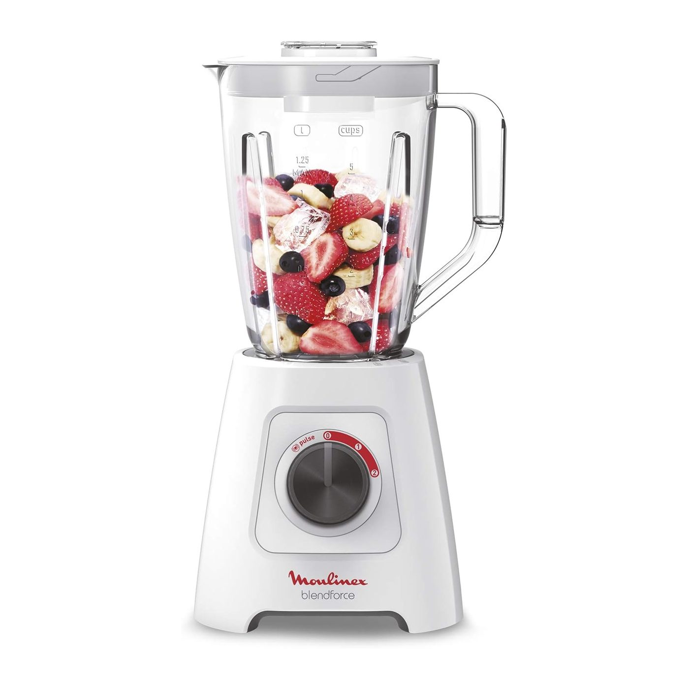 Moulinex 2Litre Blendforce Blender | LM422127.Blendforce blender mixer delivers power, convenience and comfort to produce reliable blending results. With an innovative Air Cooling System for optimum motor durability, this blender provides a powerful motor, safety features with the Smart Lock Technology and an ergonomic design for increased efficiency and ease-of-use.Operating the blender is easy and comfortable, with a textured grip around the rotary button for smooth turning, an ergonomic handle with a natural, intuitive feel, and suction cups on the arched base providing added stability.The generous 2 L capacity is perfect for any occasion, with a measuring cup included for extra precision.Thanks to its accessory, a grinder, you can grind all your spices, coffee beans, dried fruits as almonds, nuts, etc.