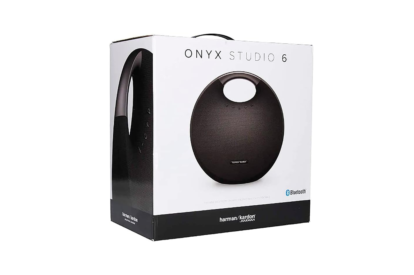 The Onyx Studio 6 Wireless Bluetooth Speaker from Harman Kardon is a stylish and portable speaker designed for premium sound quality in any environment. With its signature round silhouette and sleek aluminum handle, the Onyx Studio 6 offers powerful, room-filling audio while being easy to carry wherever you go. This versatile speaker is perfect for both indoor and outdoor use, making it an ideal companion for parties, gatherings, or just relaxing at home.