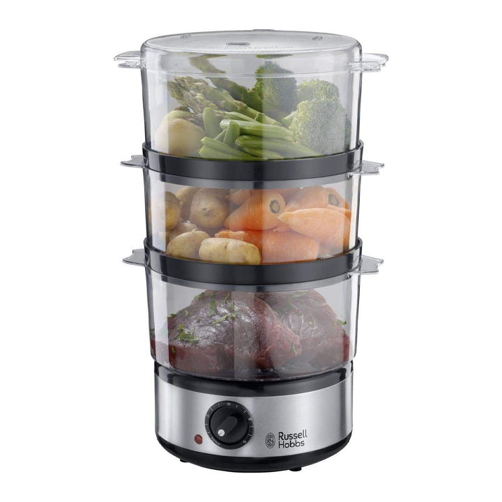 This three tier steam from Russell Hobbs is perfect for cooking everything from broccoli to fish. With a 60 minute timer which will tell you exactly when your food is cooked, it boasts a compact design and seven litre capacity and an automatic safety shut-off for peace of mind. The stylish design will look great on your countertop and cooks quickly and efficiently – and it even comes with a handy rice bowl.