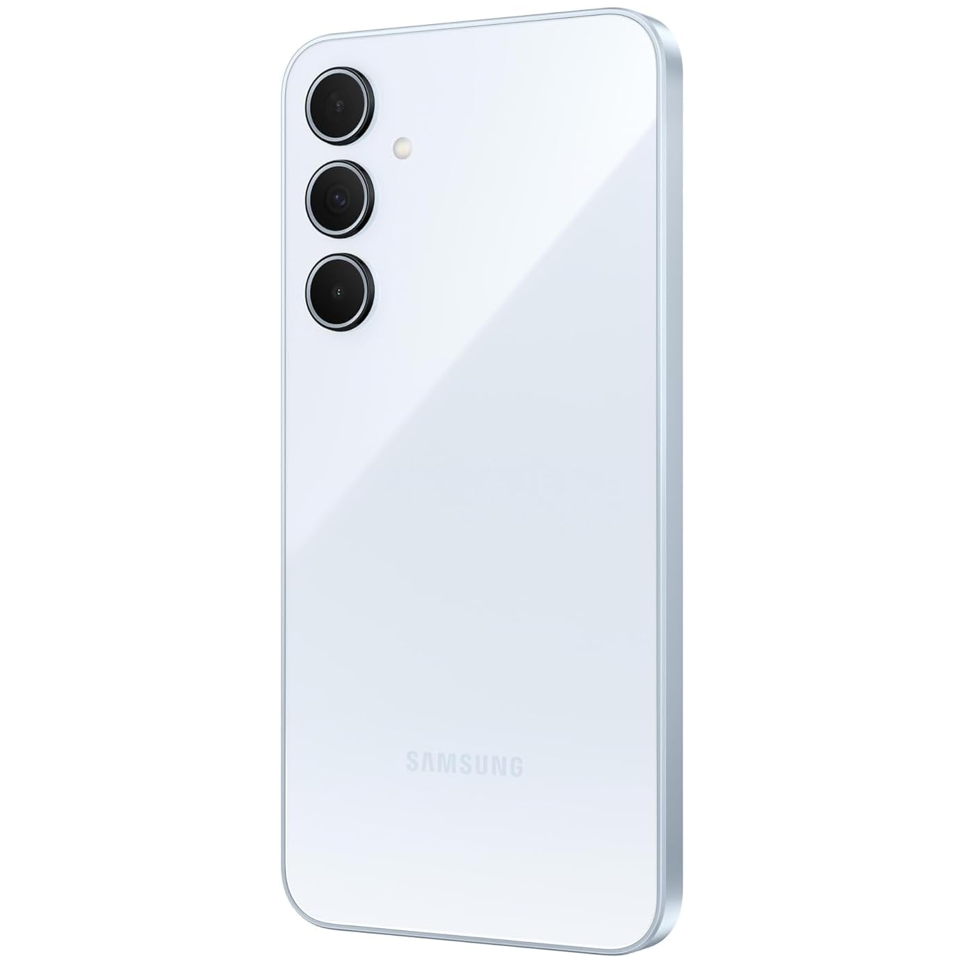 The Samsung Galaxy A35 5G is a midrange smartphone with an iconic design. It features a linear camera layout encased in an elegant glass back and a flat side frame, resulting in a sleek and stylish appearance. The phone comes in trendy colors like Awesome Iceblue, Awesome Lilac, Awesome Lemon, and Awesome Navy.