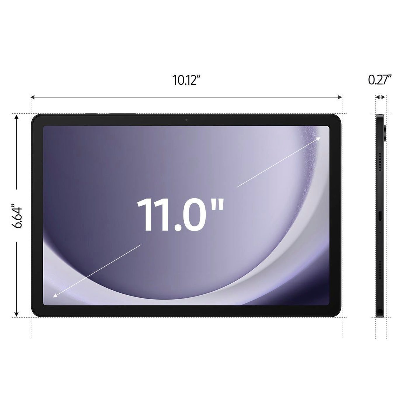¹Measured diagonally, the Galaxy Tab A9+ screen size is 11.0″ in the full rectangle and 10.9″ accounting for the rounded corners. Actual viewable area is less due to the rounded corners.