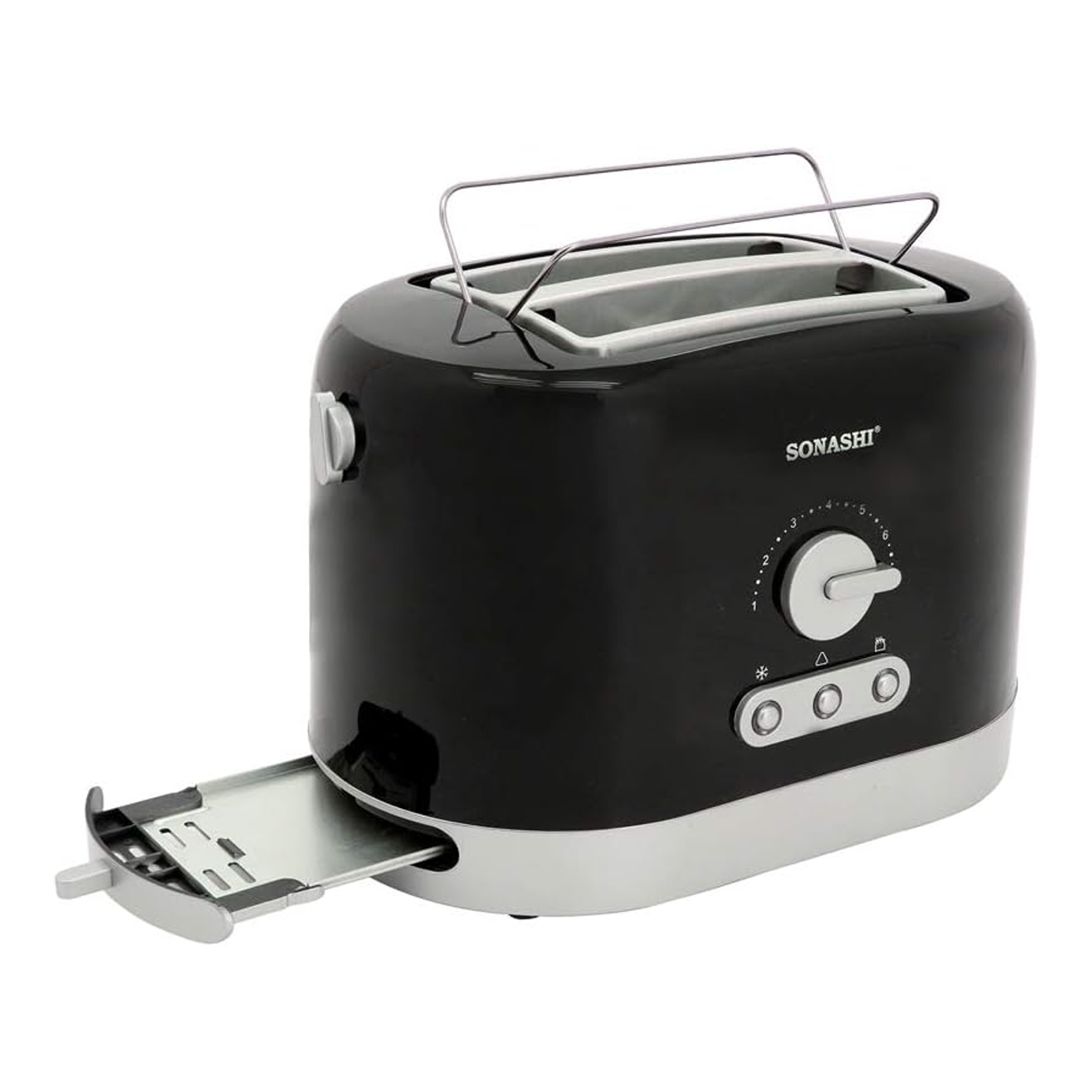 OverviewThe Sonashi Bread Toaster ST-209 is the ideal accessory that must grace every breakfast table. It has black body and contemporary design that ensure that this device looks quite attractive and impressive. This Toaster is very easy and convenient to use. Equipped with the defrost function, this device allows you to reheat a toast or defrost a pastry from the previous night.