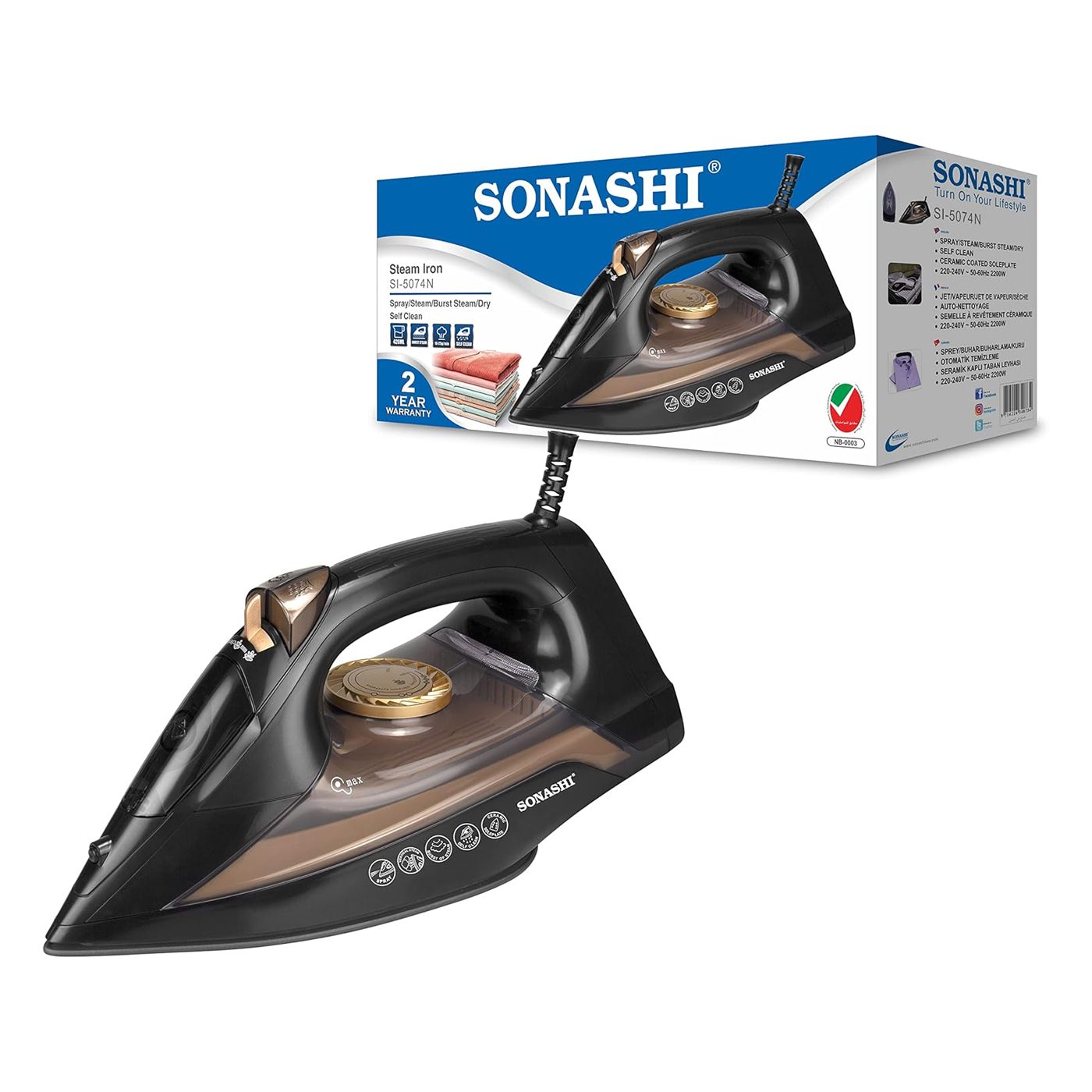 Brand Sonashi Steam Iron With Ceramic Soleplate 2200W, SI-5074N
