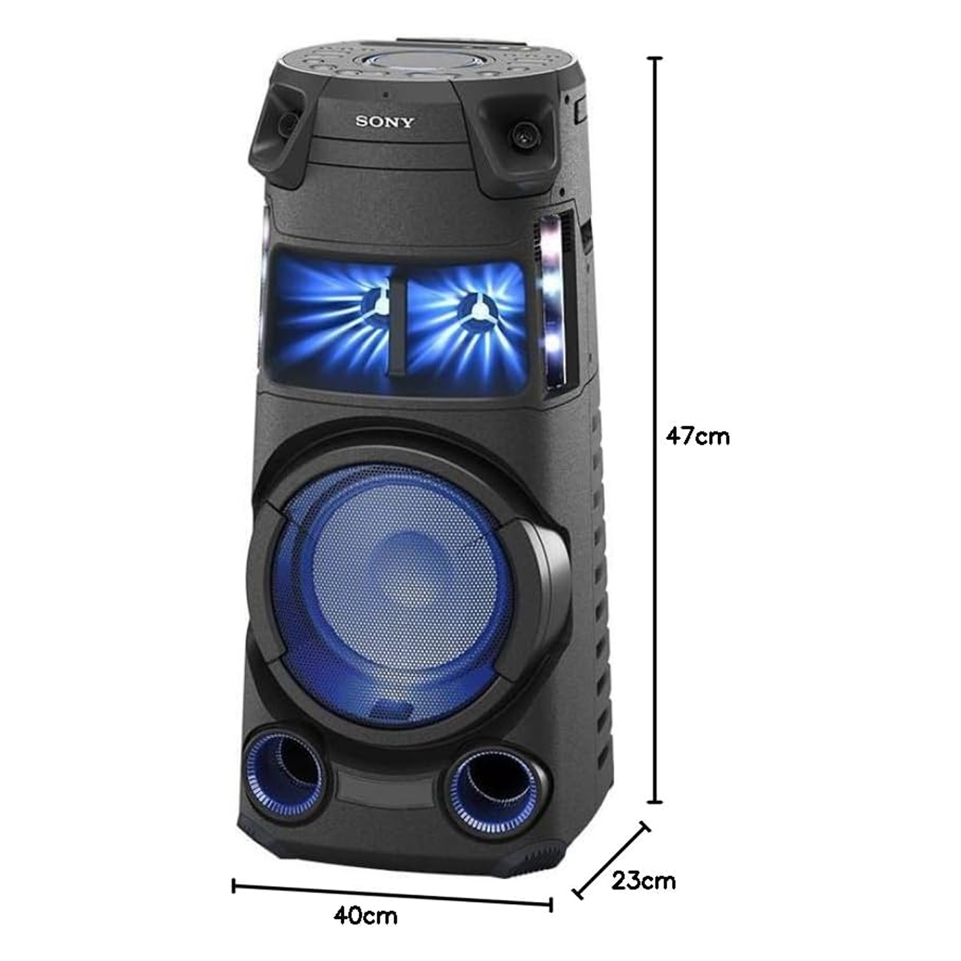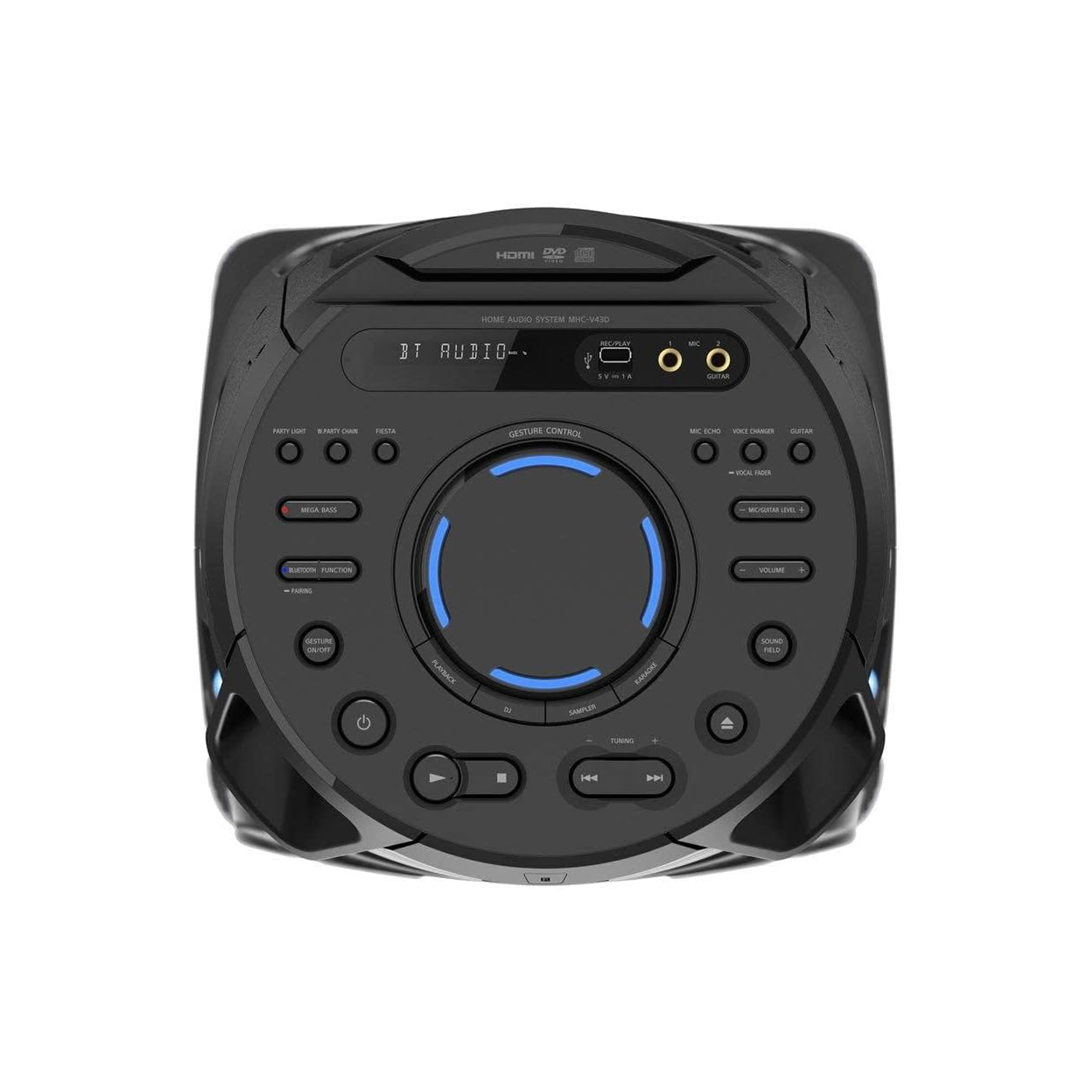 Enjoy a bigger, fuller sound and synchronised lighting. With Wireless Party Chain, you can connect your MHC-V43D to up to 50 compatible high-power audio systems via Bluetooth.