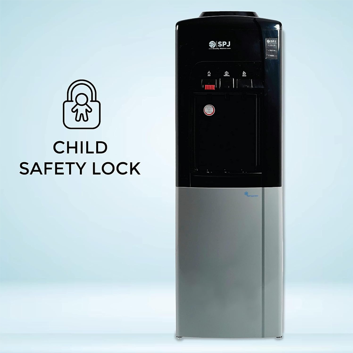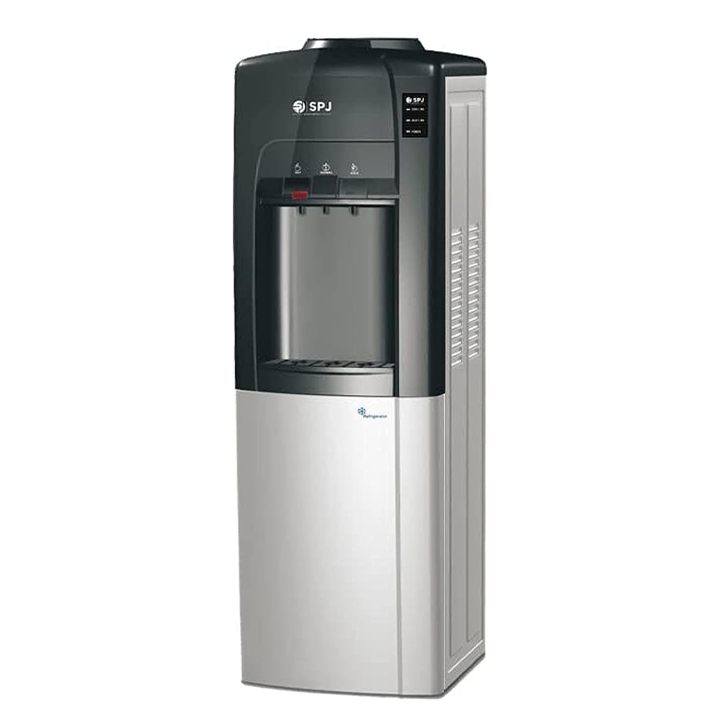 Experience convenience with the SPJ Water Dispenser. With its 16-liter Refrigerator, say goodbye to frequent refills. Enjoy hot, normal, or cold water at your fingertips with three temperature options, thanks to compressor cooling technology. The three push taps offer effortless dispensing, while the child lock ensures safety in households. Operate quietly with its low-noise design, complemented by anti-bacterial materials for clean water. Its stylish and compact build enhances any space. Plus, save energy without compromising performance. SPJ prioritizes user-friendliness, providing hassle-free technology for all.