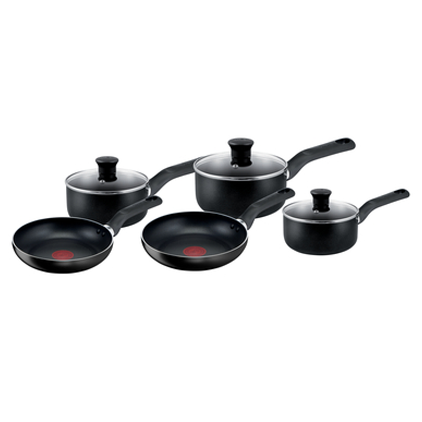 Tefal Essential 5 Piece Pots & Pans Set B472S544 set is a complete set with three saucepans with glass lids and two frying pans perfect for household. It is an all hobs except induction range ideal for users seeking delicious results every day.
