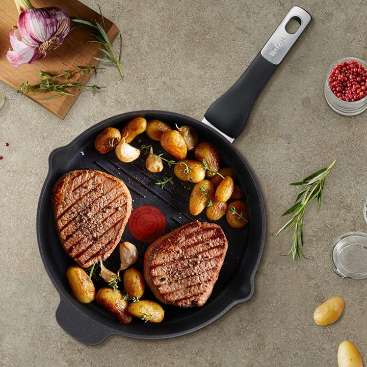 TEFAL Grill Pan | G6 Unlimited 26 cm Round Grillpan | with Pouring Edge | Frying Pan | Black | Cast Aluminum | E2294074